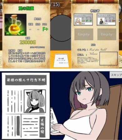 このゲームは、ギルドの受付嬢となって、クエストの受付業務を行うシミュレーションゲームです。